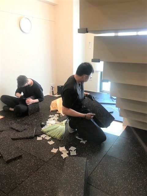 25ミリの厚くて重いマットをカットして敷き詰める作業はなかなか大変で、職人さんにお願いして良かったなと正直思いました。