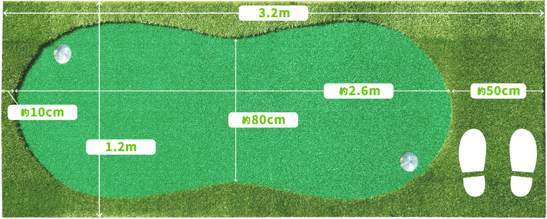また、専用フラッグ・カップ・ホールキャップが付属されており、様々なバリエーションの練習が可能で、奥行3.2mのロングパット練習にも対応しています。