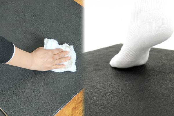 表面の素材に天然ゴム採用で、足の裏に黒ずみが付かず、防水性に優れ汚れがマットに吸着せず水拭きで簡単に拭き取れ、メンテナンスが簡単にできます。