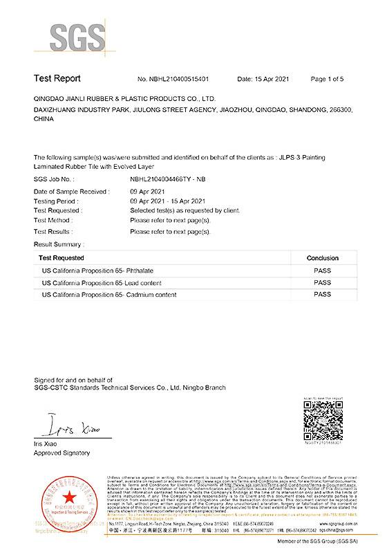 SGS社が定める国際基準を下回っており、安心してご利用いただけるゴムチップマットです。